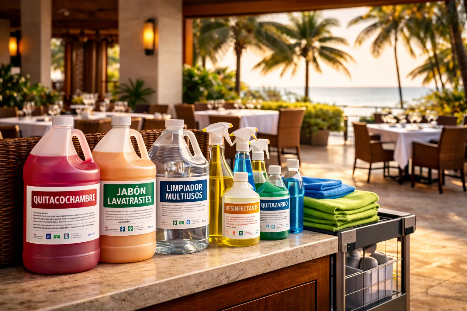 Línea profesional para cocinas exigentes: quitacochambre, pasta lavatrastes, desengrasantes industriales y desinfectantes fabricados en México. Surtimos restaurantes de Puerto Vallarta y la Bahía de Banderas.